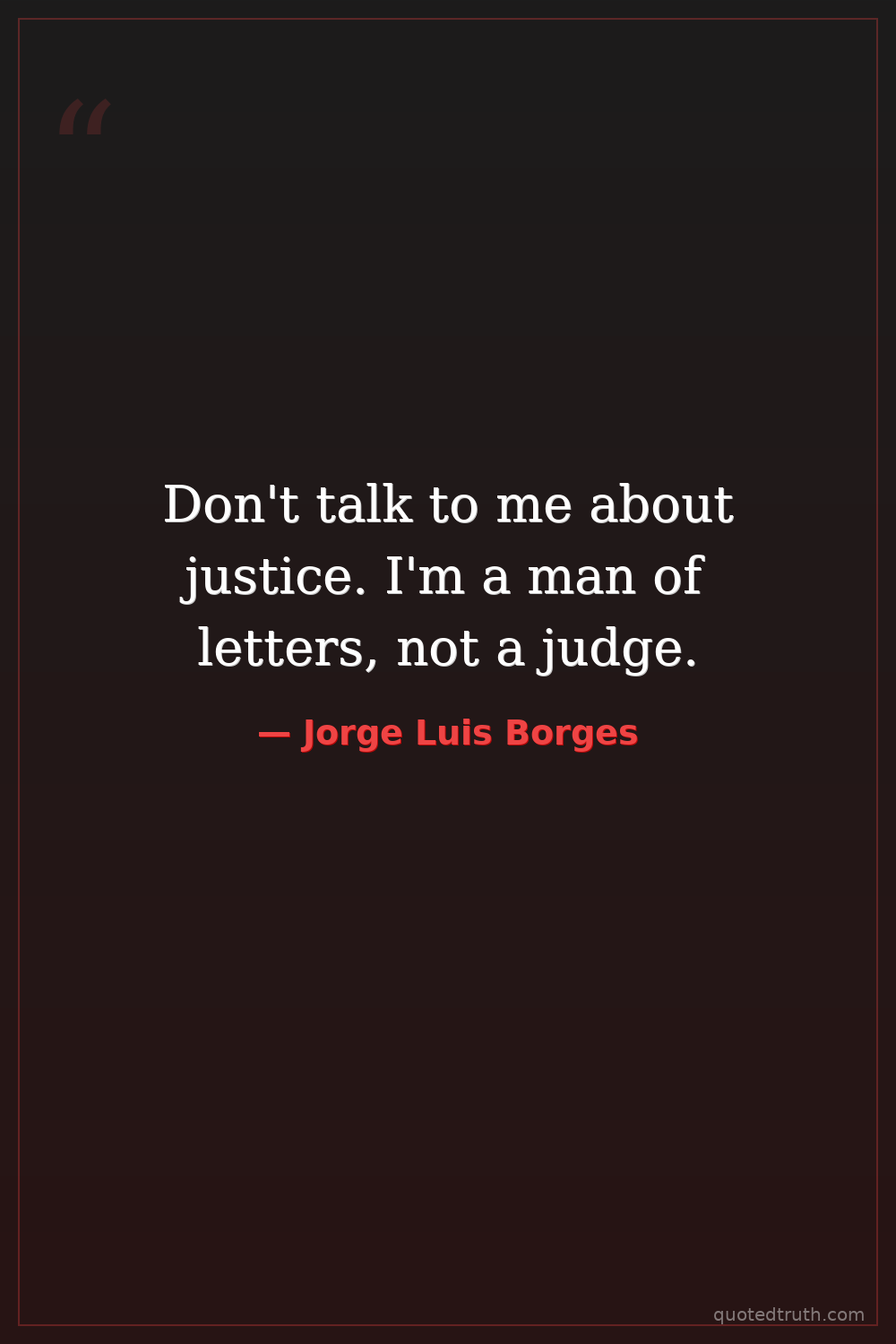 Don't talk to me about justice. I'm a man of letters, not a judge.