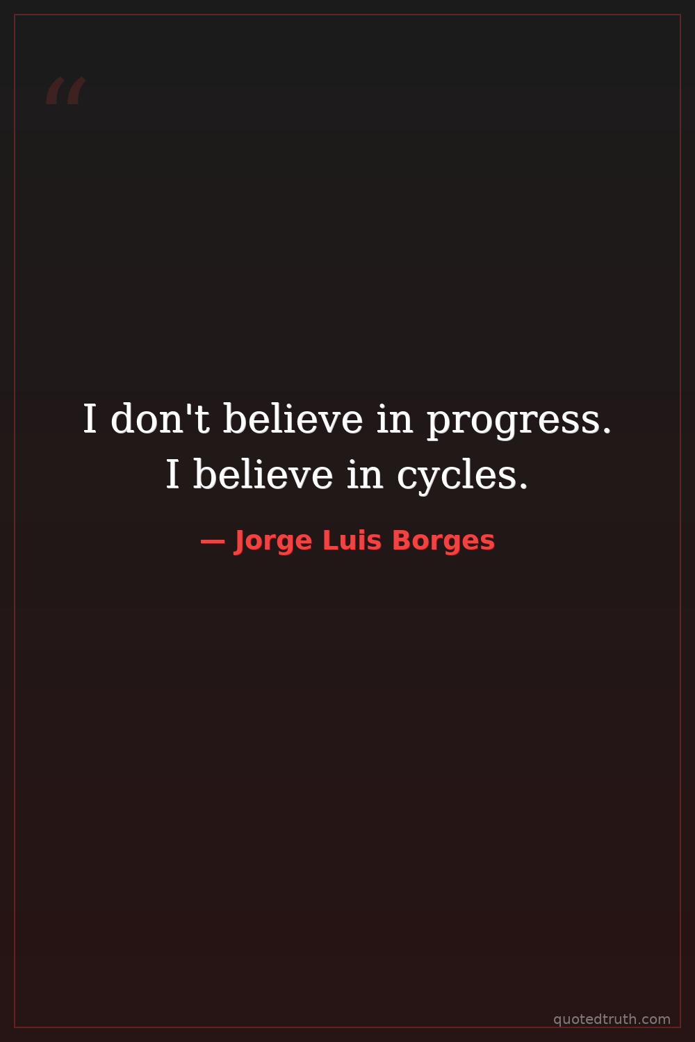 I don't believe in progress. I believe in cycles.