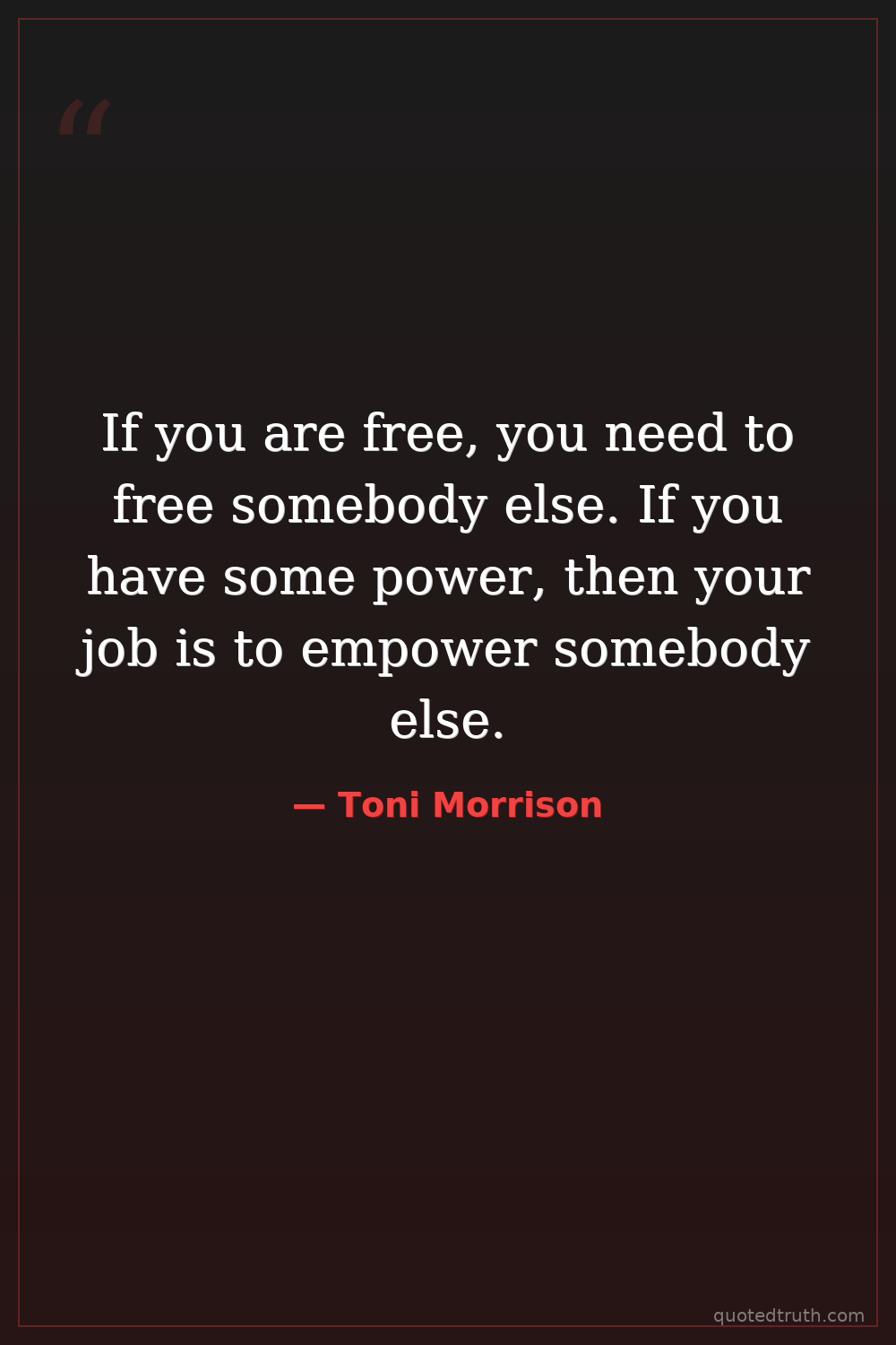 If you are free, you need to free somebody else. If you have some power, then your job is to empower somebody else.