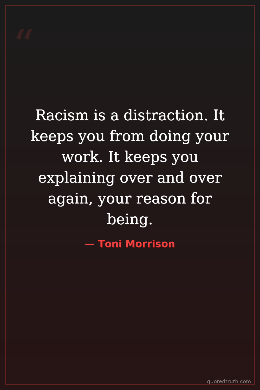 Racism is a distraction. It keeps you from doing your work. It keeps you explaining over and over again, your reason for being.