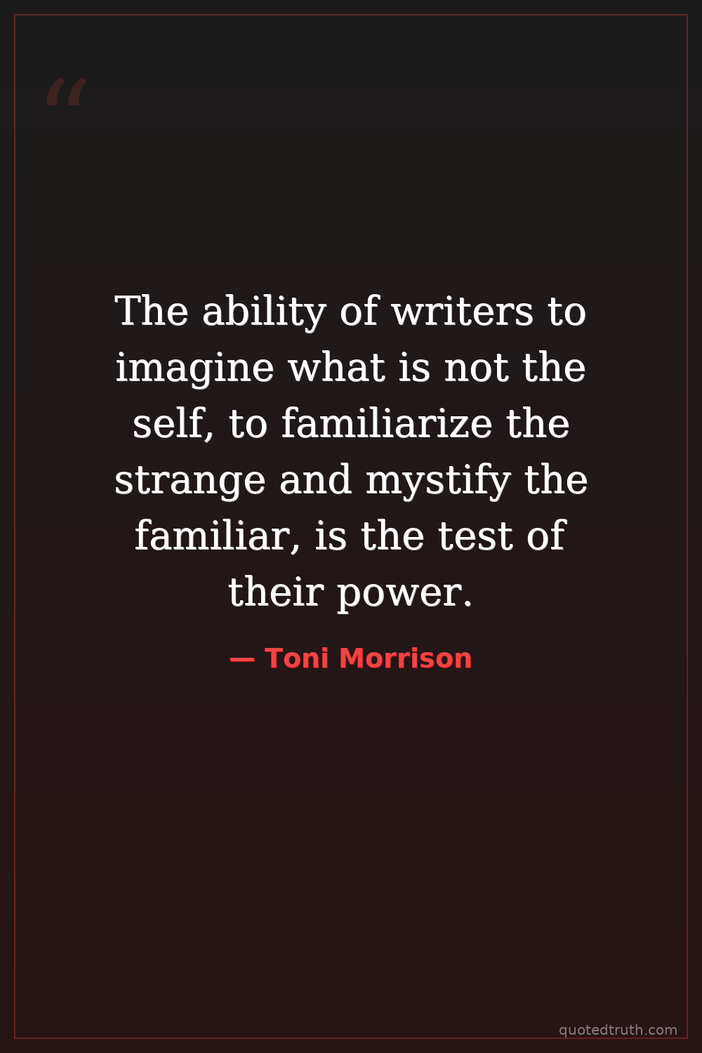 The ability of writers to imagine what is not the self, to familiarize the strange and mystify the familiar, is the test of their power.