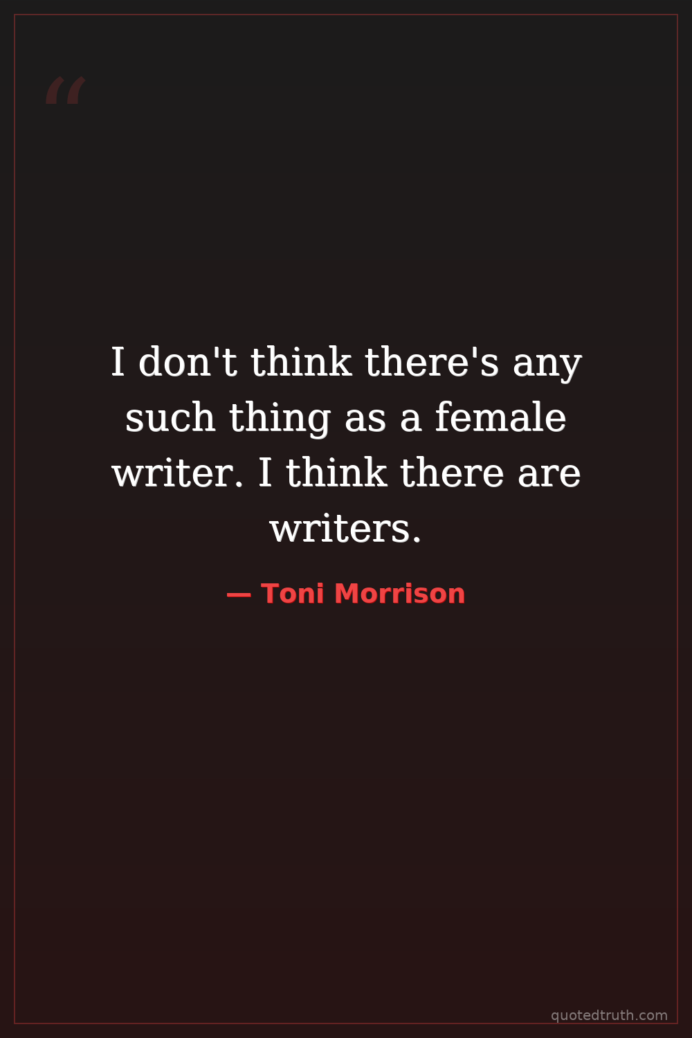 I don't think there's any such thing as a female writer. I think there are writers.
