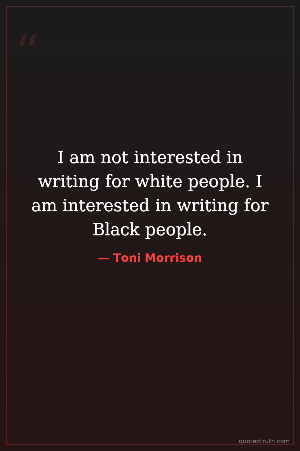 I am not interested in writing for white people. I am interested in writing for Black people.