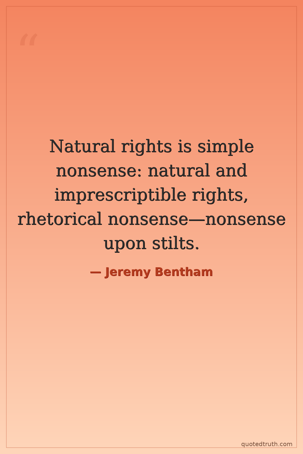 Natural rights is simple nonsense: natural and imprescriptible rights, rhetorical nonsense—nonsense upon stilts.