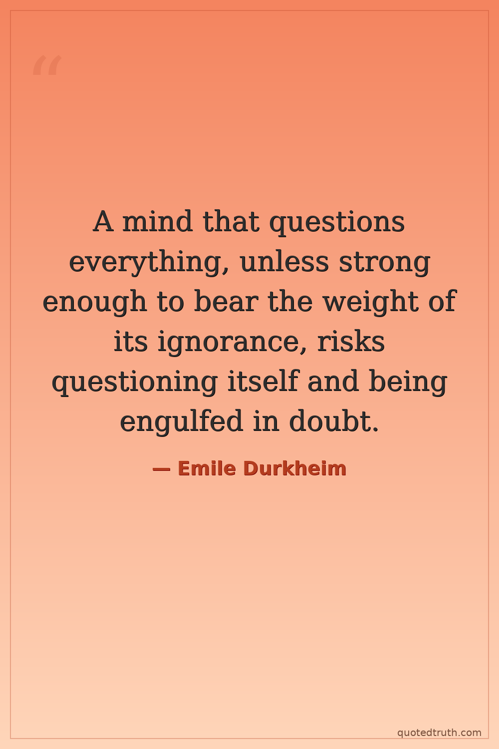 A mind that questions everything, unless strong enough to bear the weight of its ignorance, risks questioning itself and being engulfed in doubt.