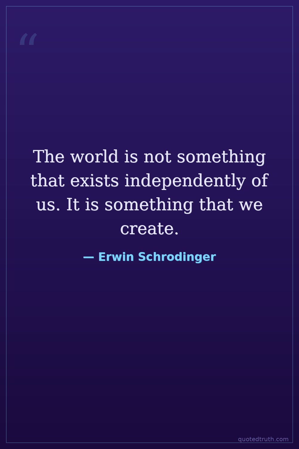 Shocking"We do not belong to this material world that science constructs for us. We are not in it; we are outside. We are only spectators. The reason why we believe that we are in it, that we belong to the pic…"