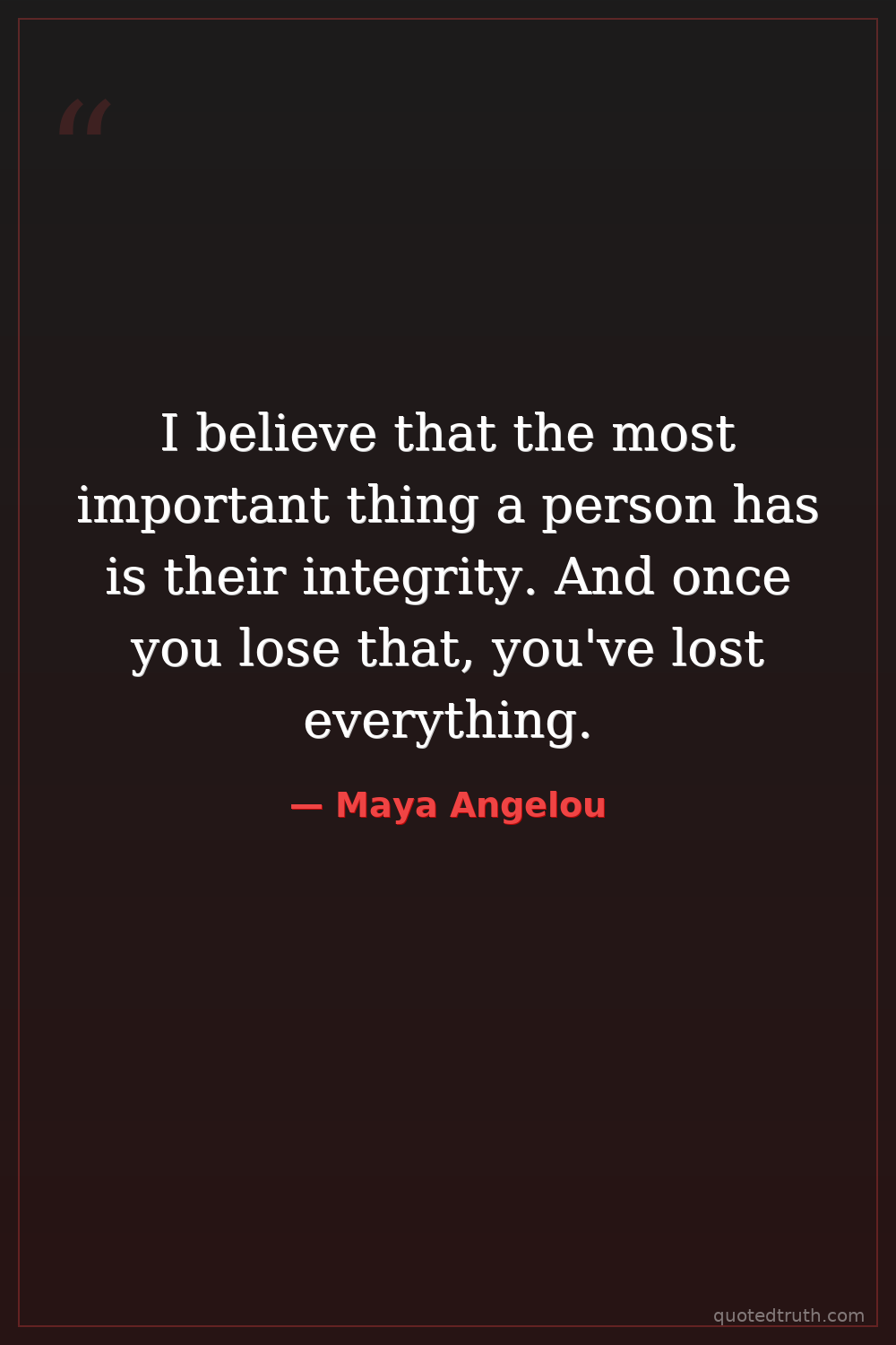 I believe that the most important thing a person has is their integrity. And once you lose that, you've lost everything.