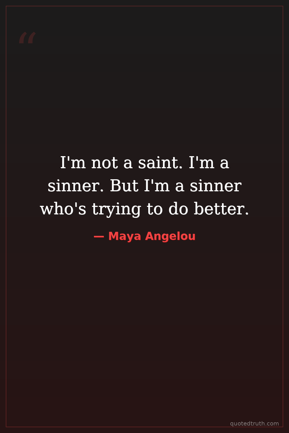 I'm not a saint. I'm a sinner. But I'm a sinner who's trying to do better.