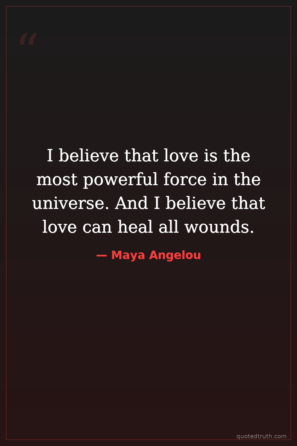 I believe that love is the most powerful force in the universe. And I believe that love can heal all wounds.
