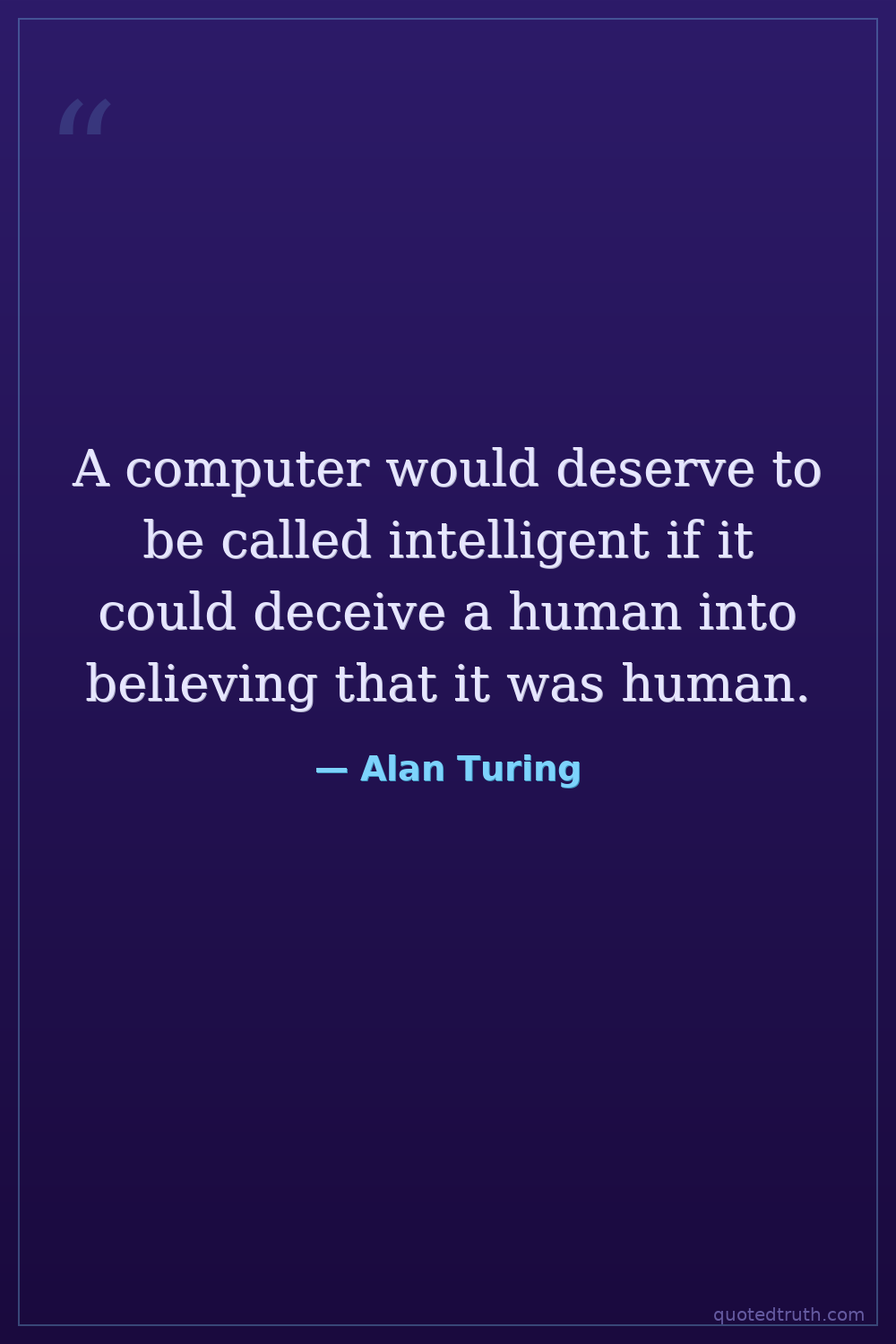 A computer would deserve to be called intelligent if it could deceive a human into believing that it was human.