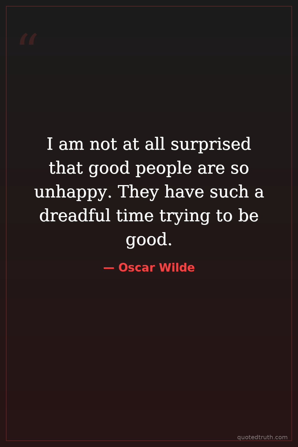 I am not at all surprised that good people are so unhappy. They have such a dreadful time trying to be good.