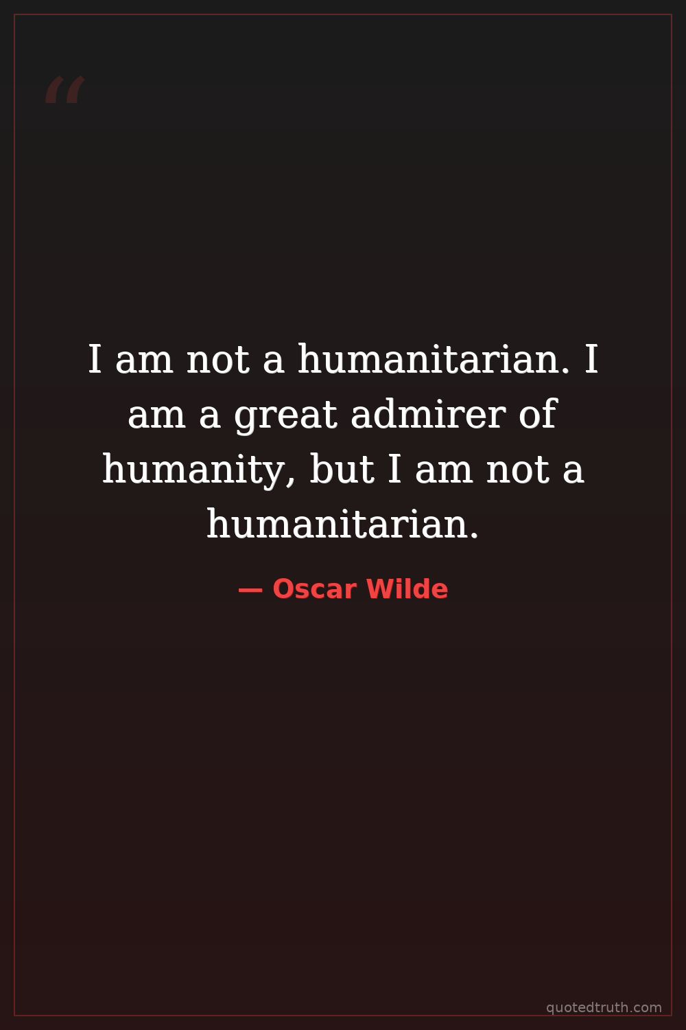 I am not a humanitarian. I am a great admirer of humanity, but I am not a humanitarian.