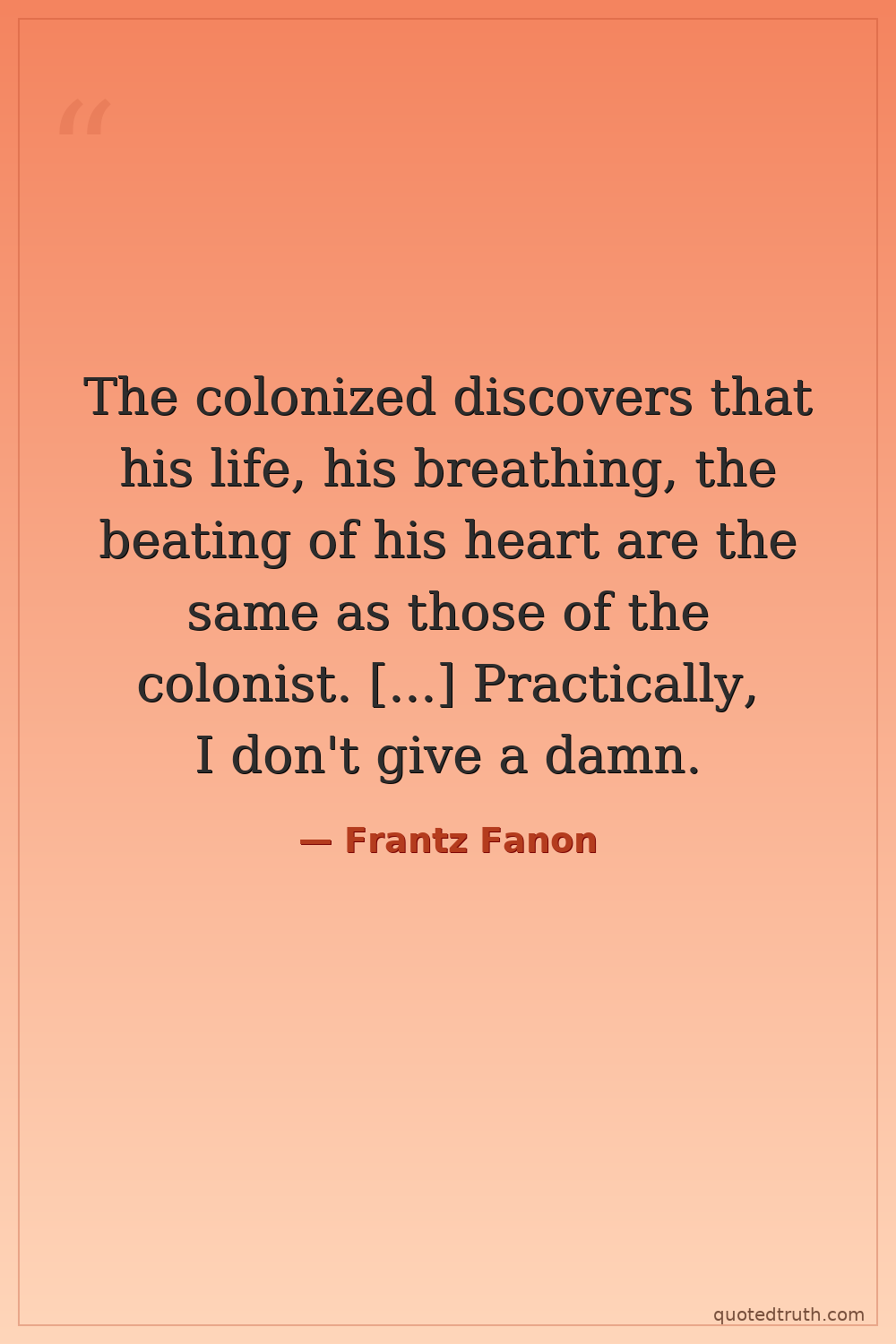 The colonized discovers that his life, his breathing, the beating of his heart are the same as those of the colonist. [...] Practically, I don't give a damn.