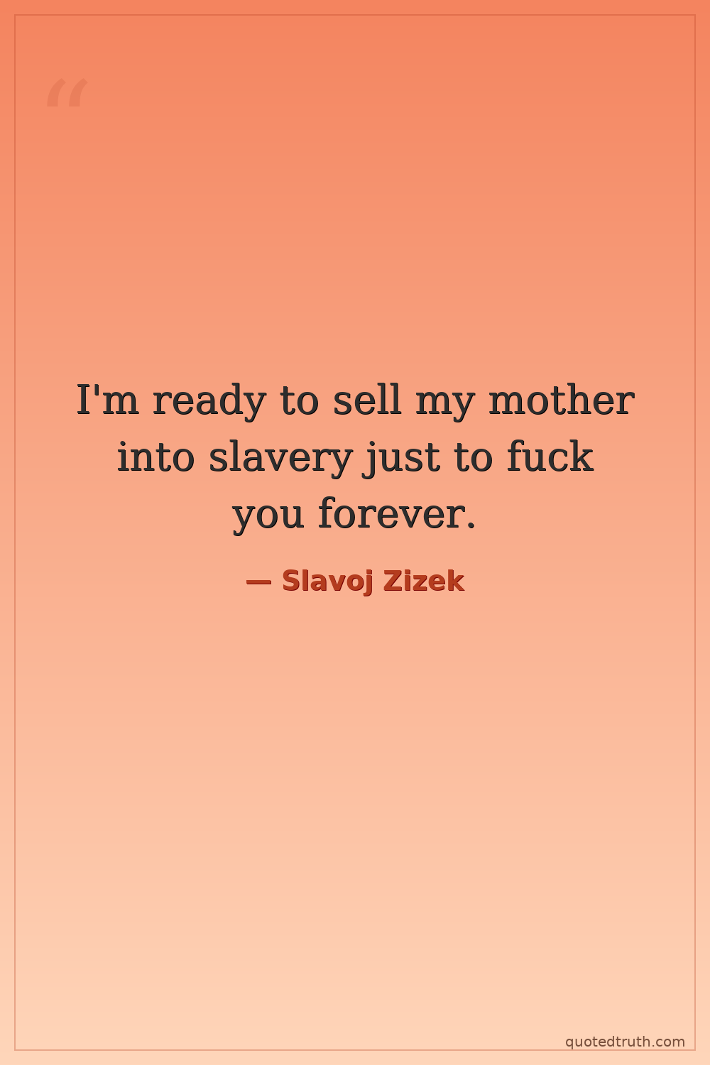 I'm ready to sell my mother into slavery just to fuck you forever.