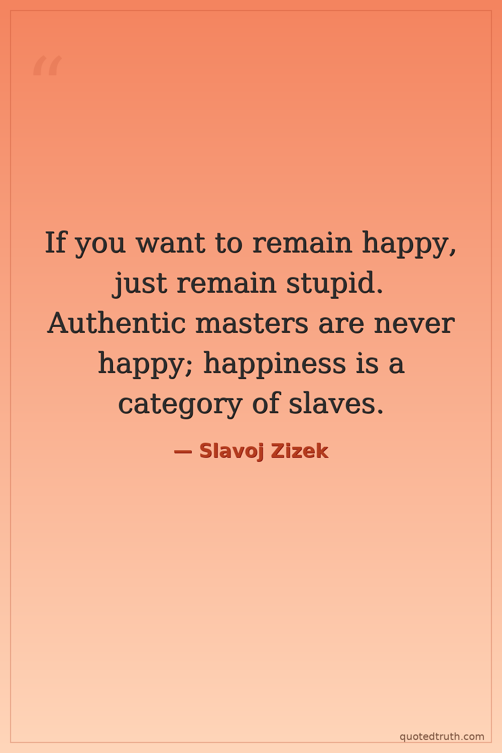 If you want to remain happy, just remain stupid. Authentic masters are never happy; happiness is a category of slaves.