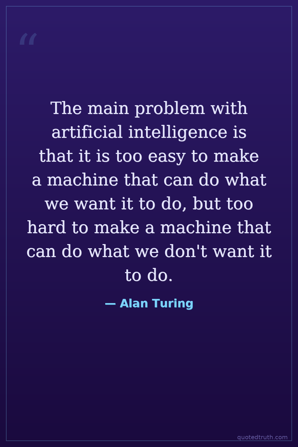 The main problem with artificial intelligence is that it is too easy to make a machine that can do what we want it to do, but too hard to make a machine that can do what we don't want it to do.