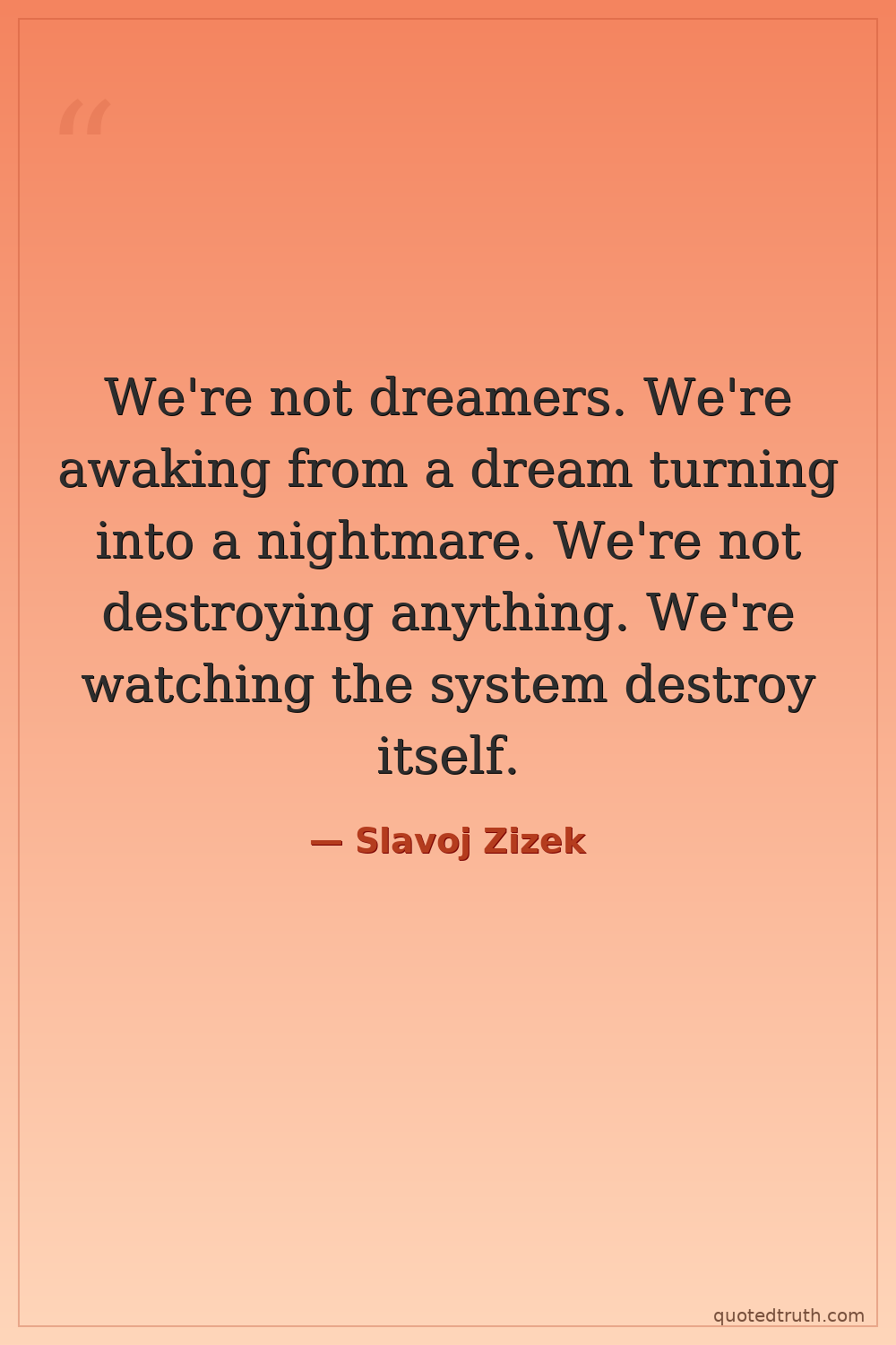 We're not dreamers. We're awaking from a dream turning into a nightmare. We're not destroying anything. We're watching the system destroy itself.