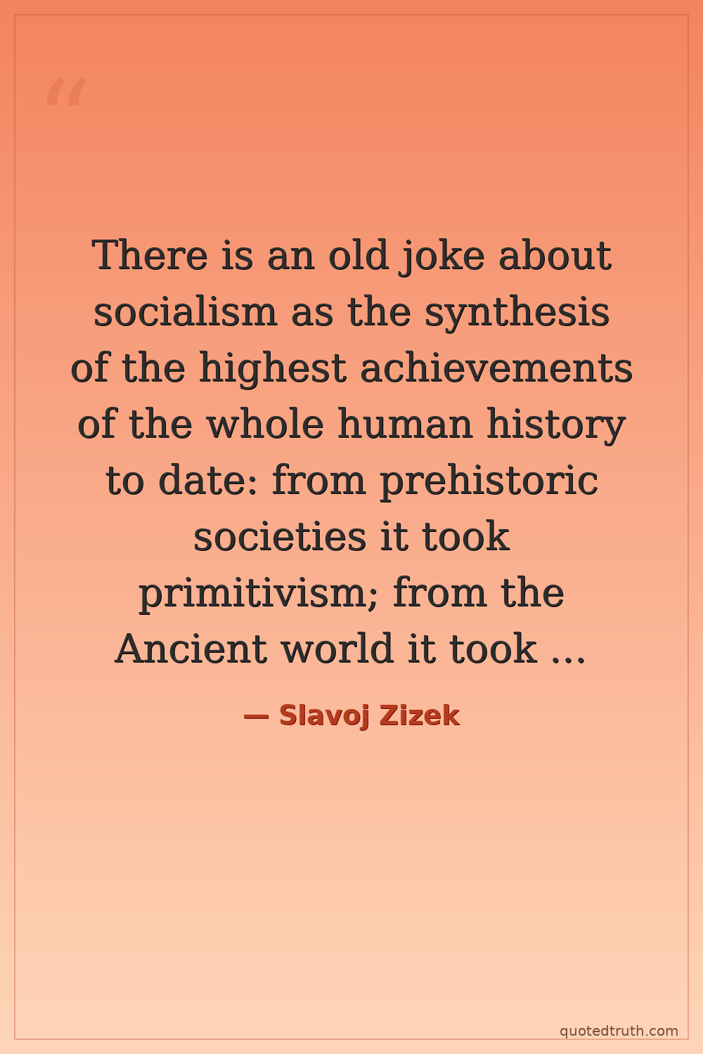 There is an old joke about socialism as the synthesis of the highest achievements of the whole human history to date: from prehistoric societies it took primitivism; from the Ancient world it took slavery; from medieval society brutal domination; from capitalism exploitation; and from socialism the name..