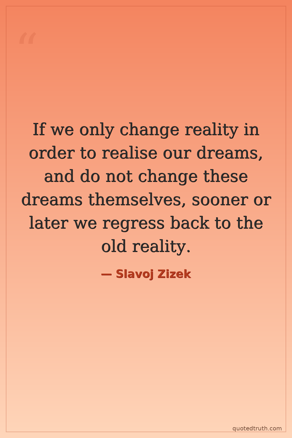 If we only change reality in order to realise our dreams, and do not change these dreams themselves, sooner or later we regress back to the old reality.
