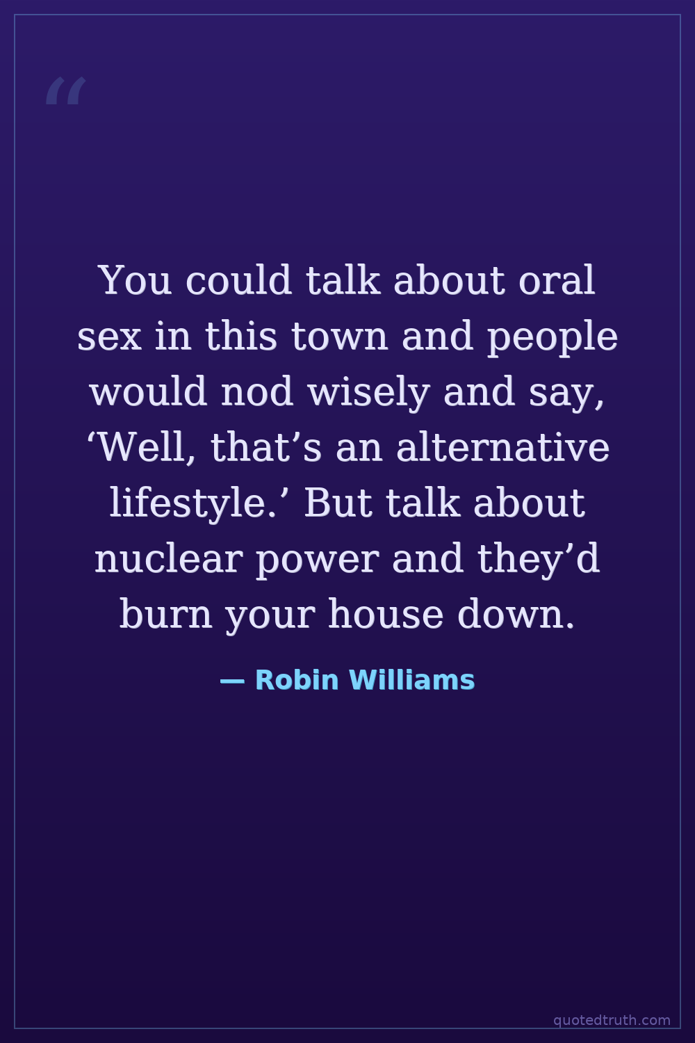 You could talk about oral sex in this town and people would nod wisely and say, ‘Well, that’s an alternative lifestyle.’ But talk about nuclear power and they’d burn your house down.