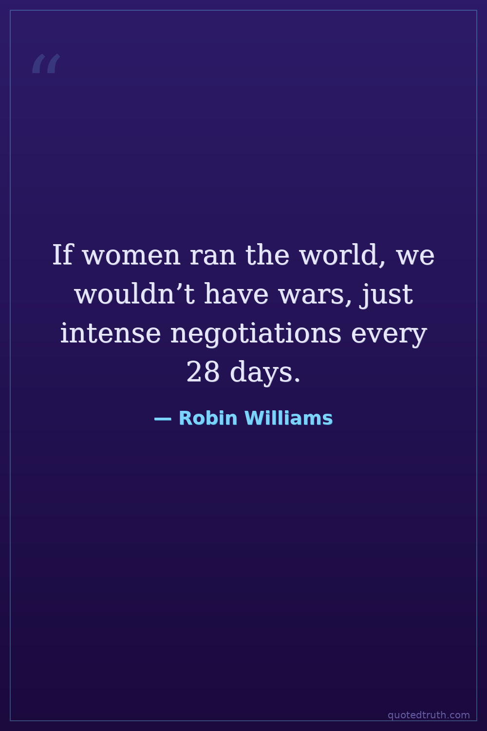 If women ran the world, we wouldn’t have wars, just intense negotiations every 28 days.