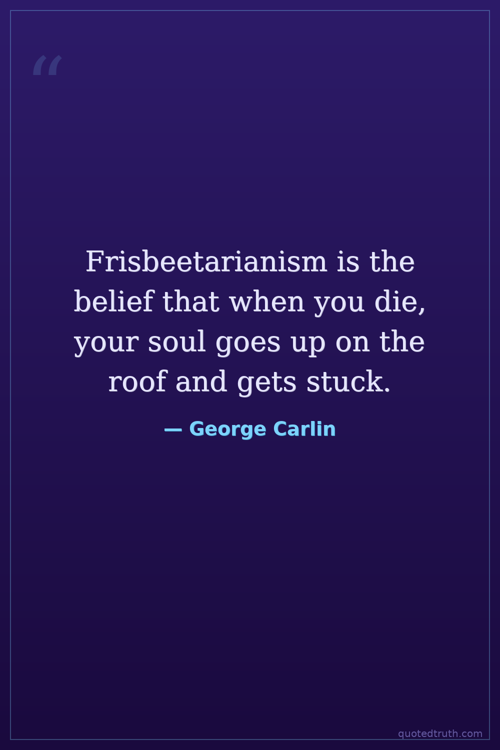 Frisbeetarianism is the belief that when you die, your soul goes up on the roof and gets stuck.
