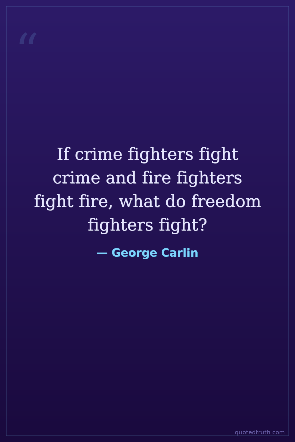 If crime fighters fight crime and fire fighters fight fire, what do freedom fighters fight?