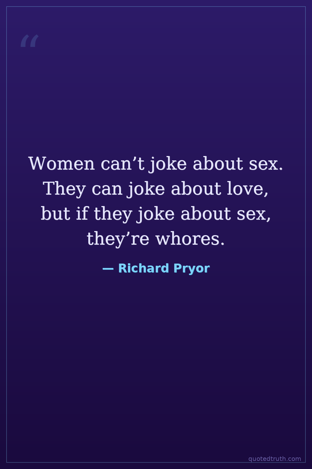 Women can’t joke about sex. They can joke about love, but if they joke about sex, they’re whores.