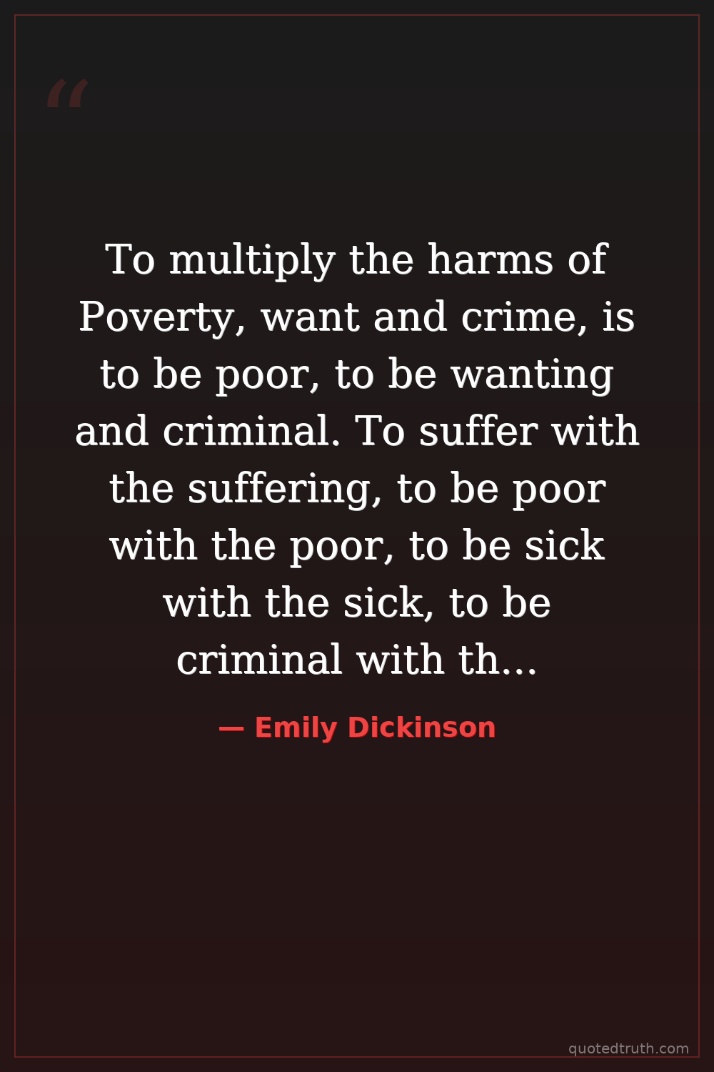 To multiply the harms of Poverty, want and crime, is to be poor, to be wanting and criminal. To suffer with the suffering, to be poor with the poor, to be sick with the sick, to be criminal with the criminal, is to be rich in sympathy and in that which is more precious than money, to be well with the well, to be virtuous with the virtuous.