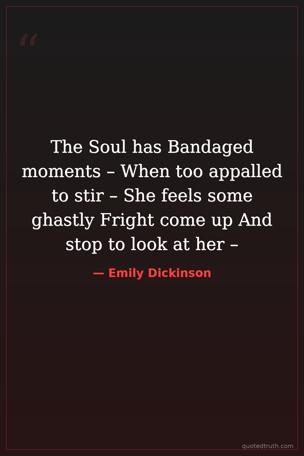 The Soul has Bandaged moments – When too appalled to stir – She feels some ghastly Fright come up And stop to look at her –