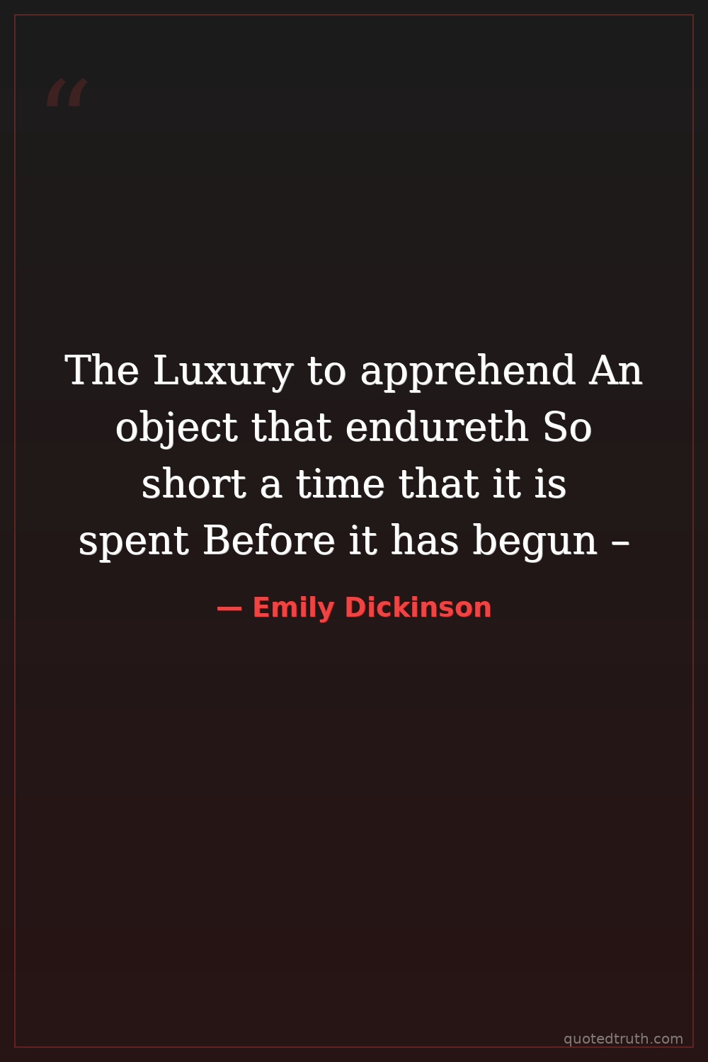 The Luxury to apprehend An object that endureth So short a time that it is spent Before it has begun –