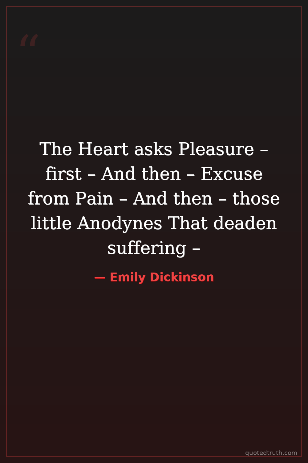 The Heart asks Pleasure – first – And then – Excuse from Pain – And then – those little Anodynes That deaden suffering –