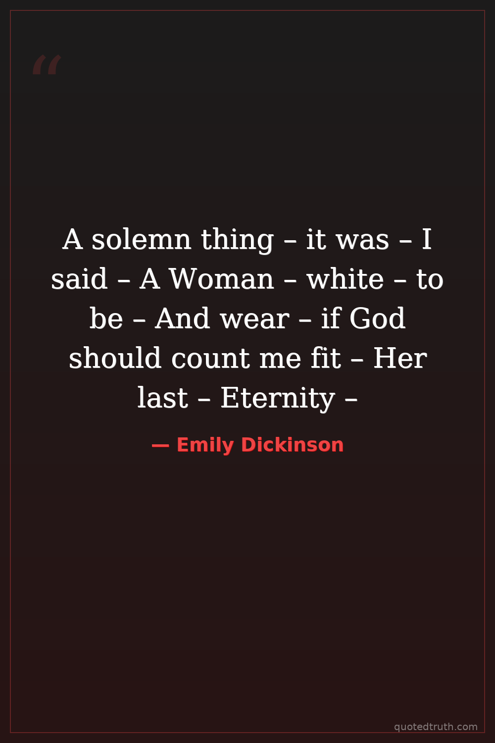 A solemn thing – it was – I said – A Woman – white – to be – And wear – if God should count me fit – Her last – Eternity –