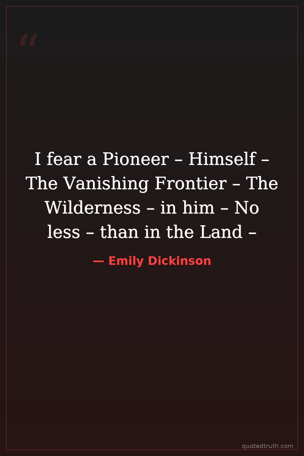 I fear a Pioneer – Himself – The Vanishing Frontier – The Wilderness – in him – No less – than in the Land –