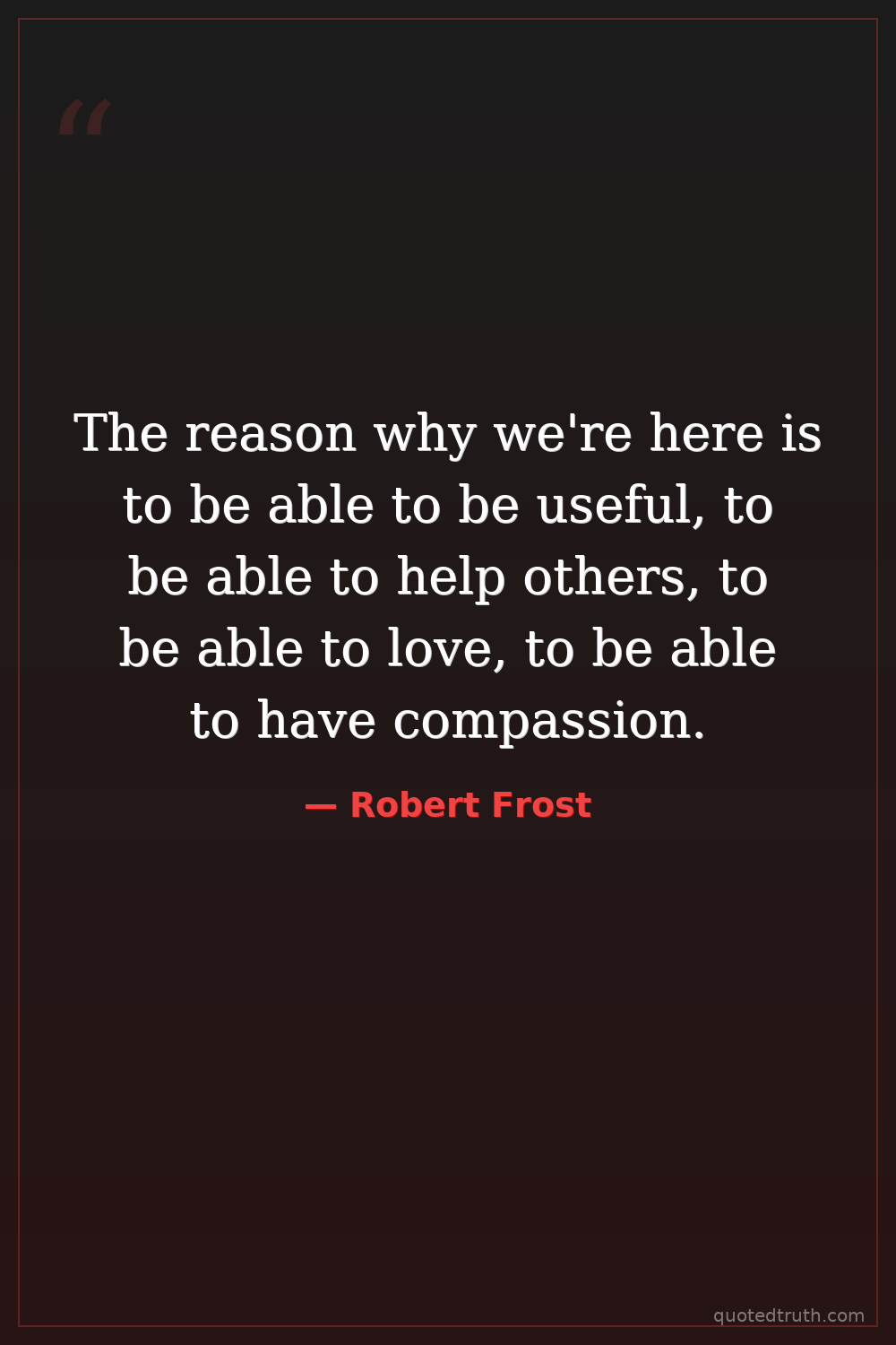 The reason why we're here is to be able to be useful, to be able to help others, to be able to love, to be able to have compassion.