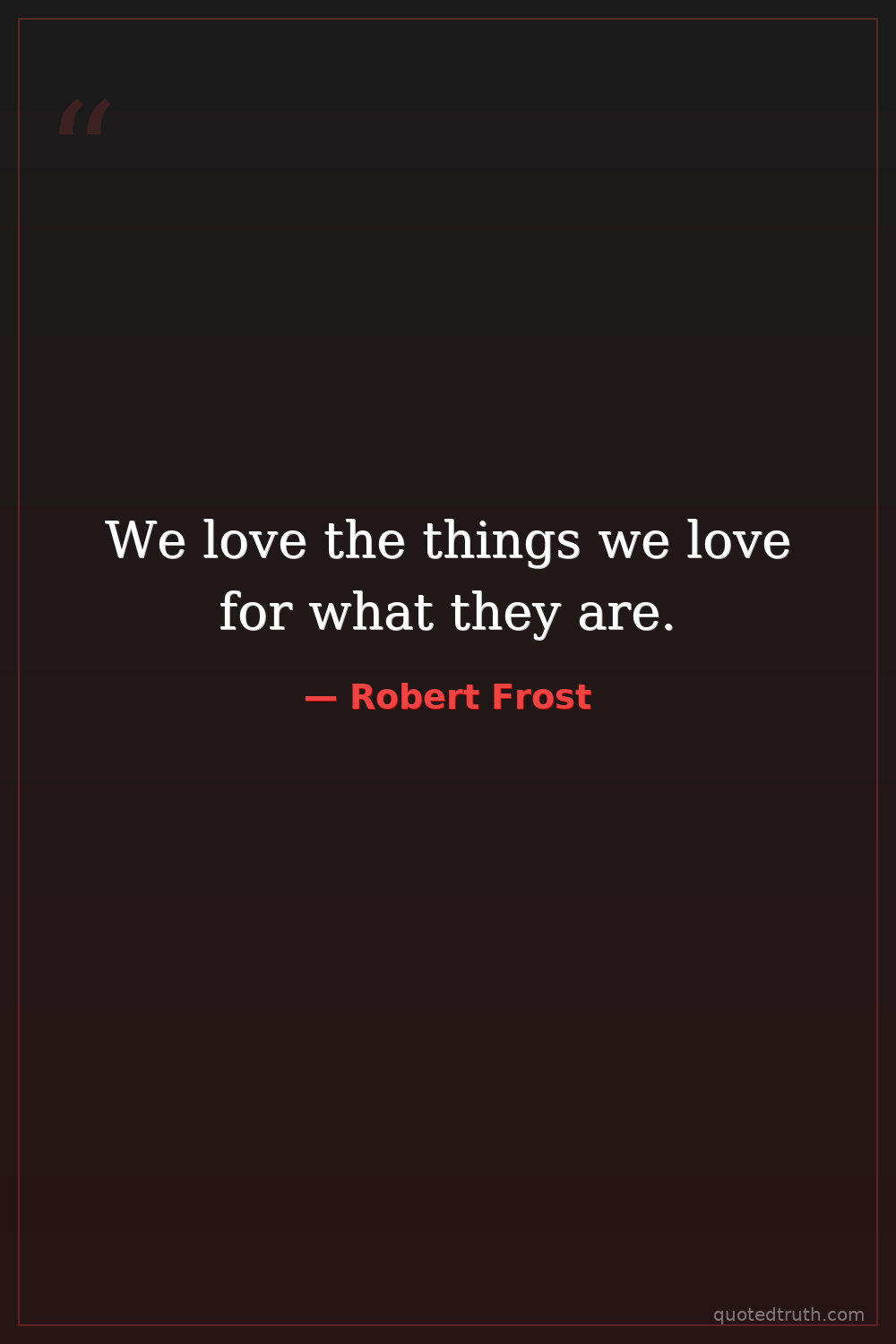 We love the things we love for what they are.
