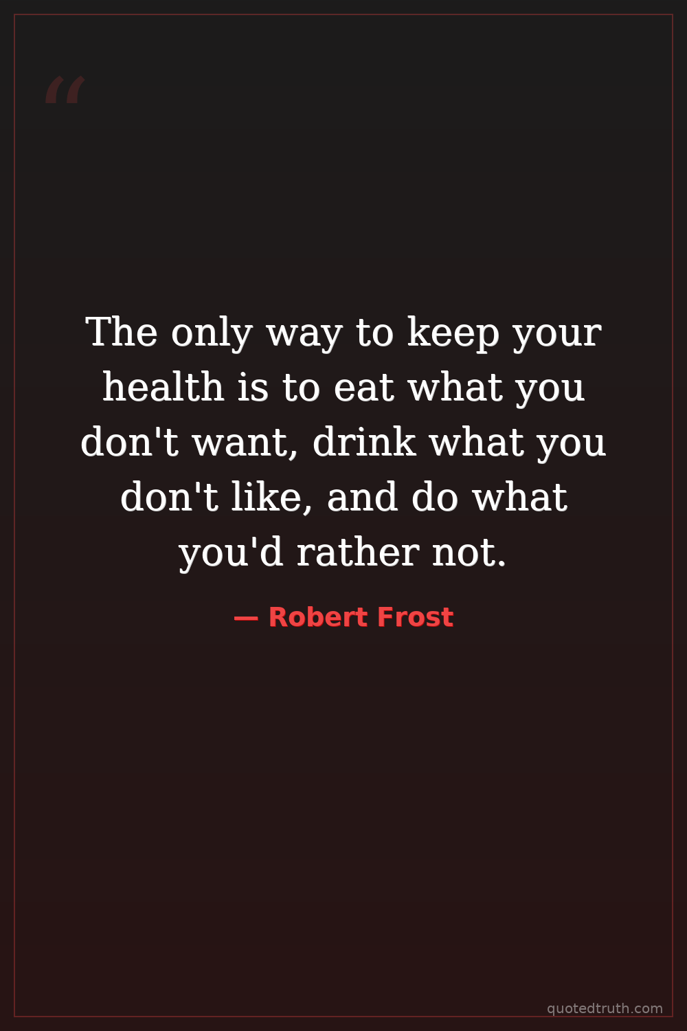 The only way to keep your health is to eat what you don't want, drink what you don't like, and do what you'd rather not.