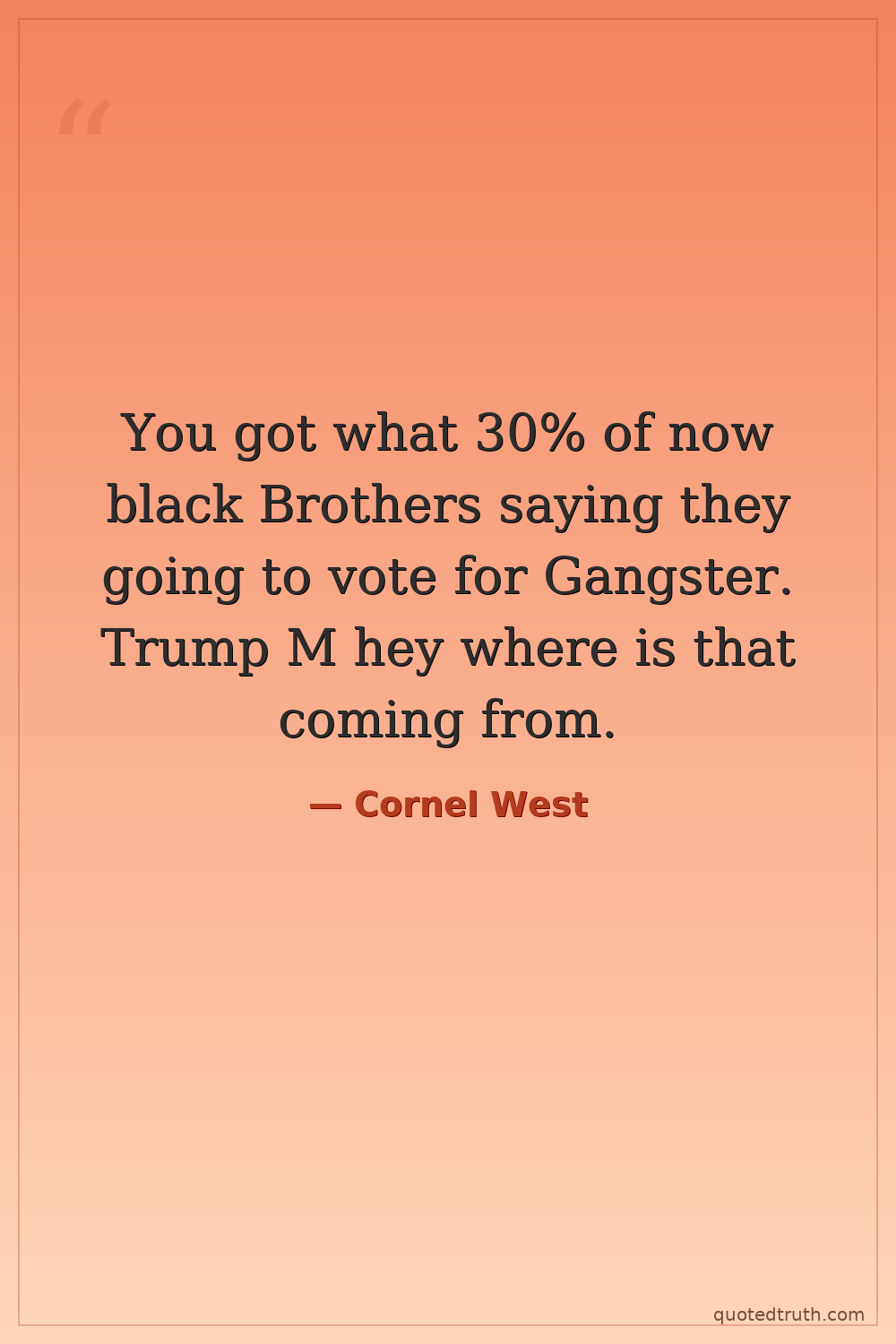 You got what 30% of now black Brothers saying they going to vote for Gangster. Trump M hey where is that coming from.