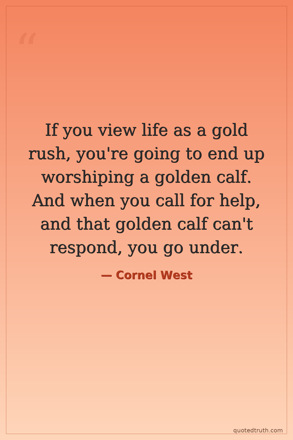 If you view life as a gold rush, you're going to end up worshiping a golden calf. And when you call for help, and that golden calf can't respond, you go under.