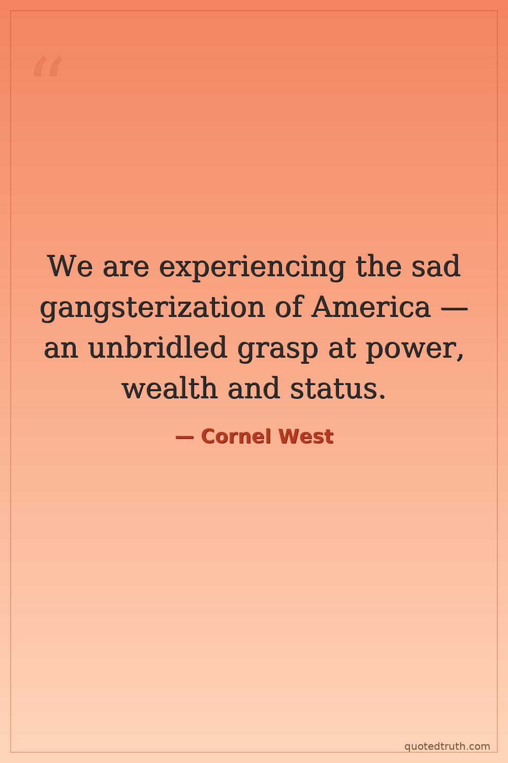 We are experiencing the sad gangsterization of America — an unbridled grasp at power, wealth and status.