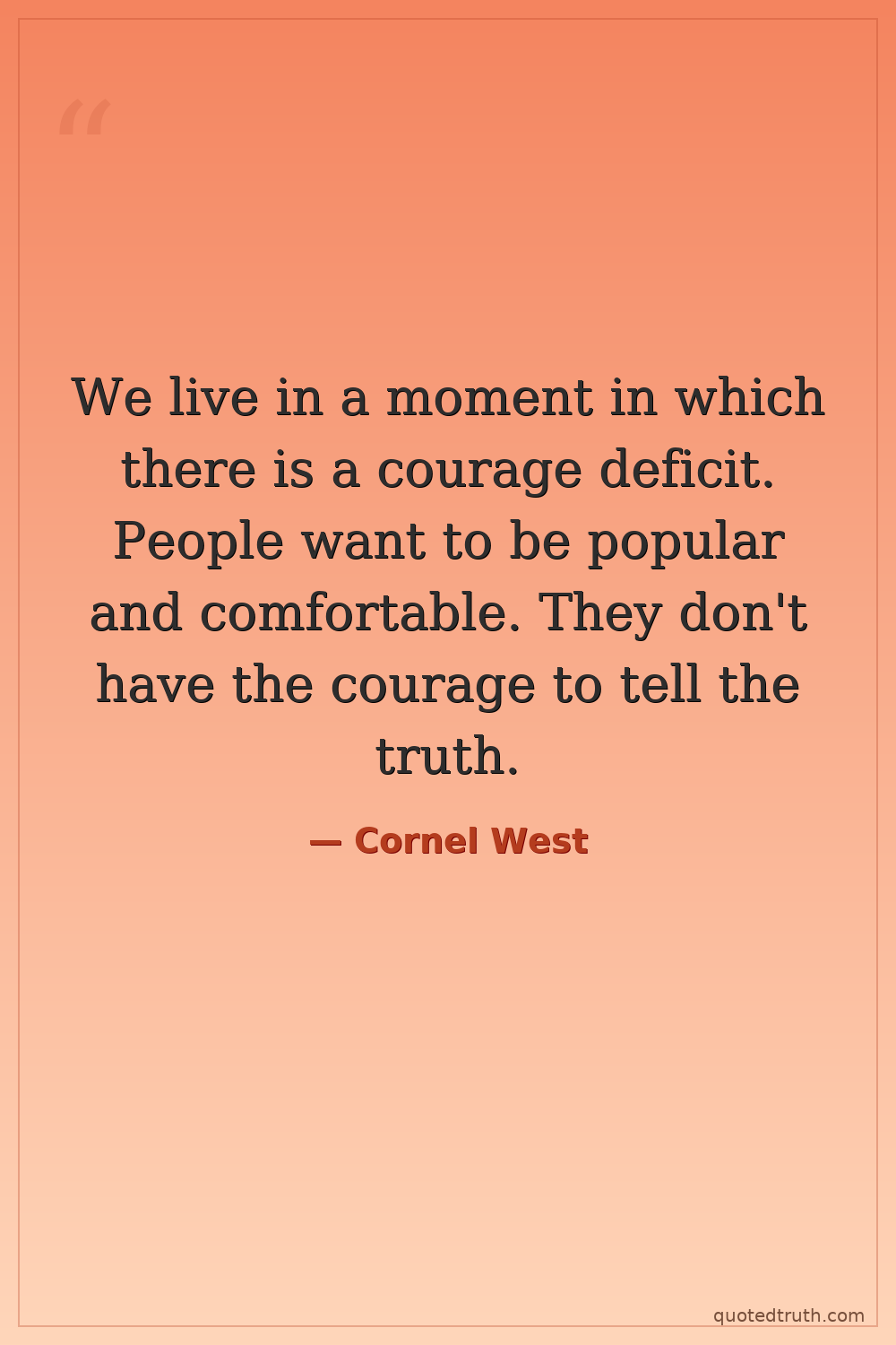 We live in a moment in which there is a courage deficit. People want to be popular and comfortable. They don't have the courage to tell the truth.