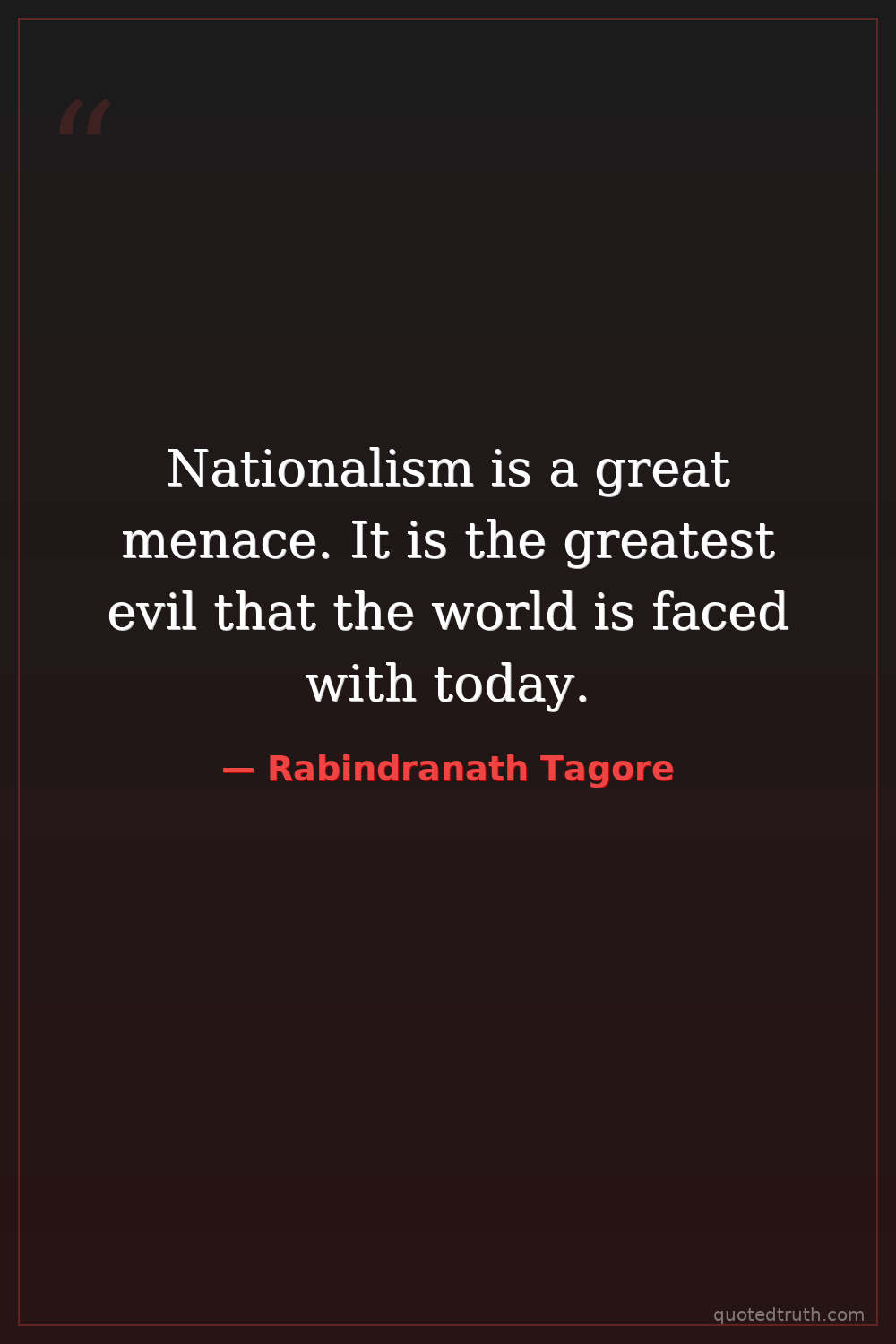 Nationalism is a great menace. It is the greatest evil that the world is faced with today.