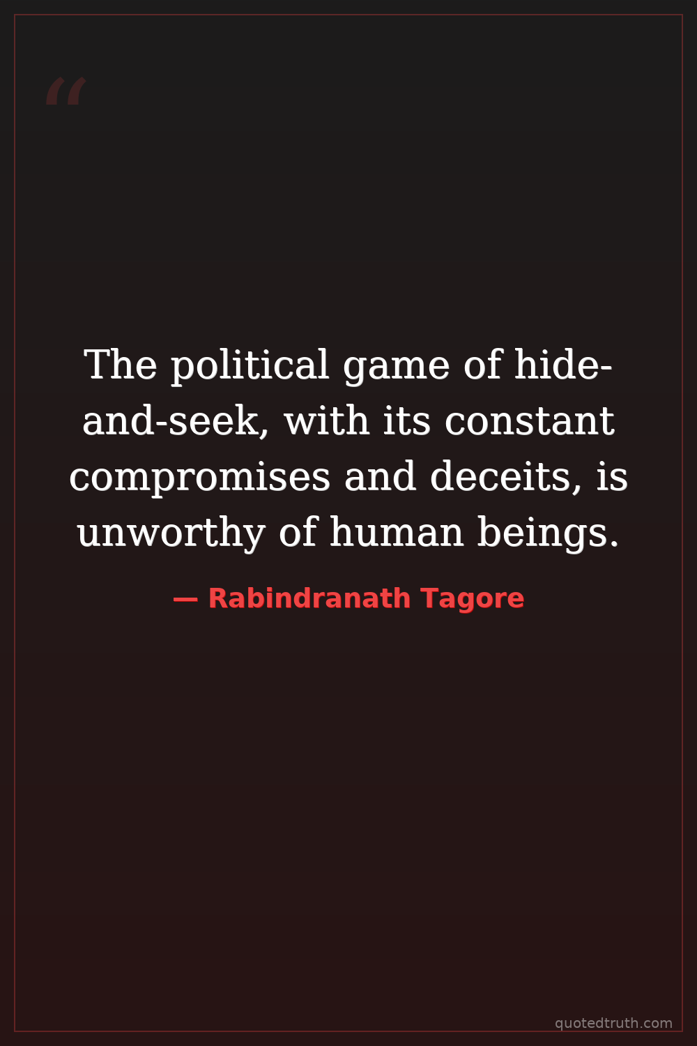 The political game of hide-and-seek, with its constant compromises and deceits, is unworthy of human beings.