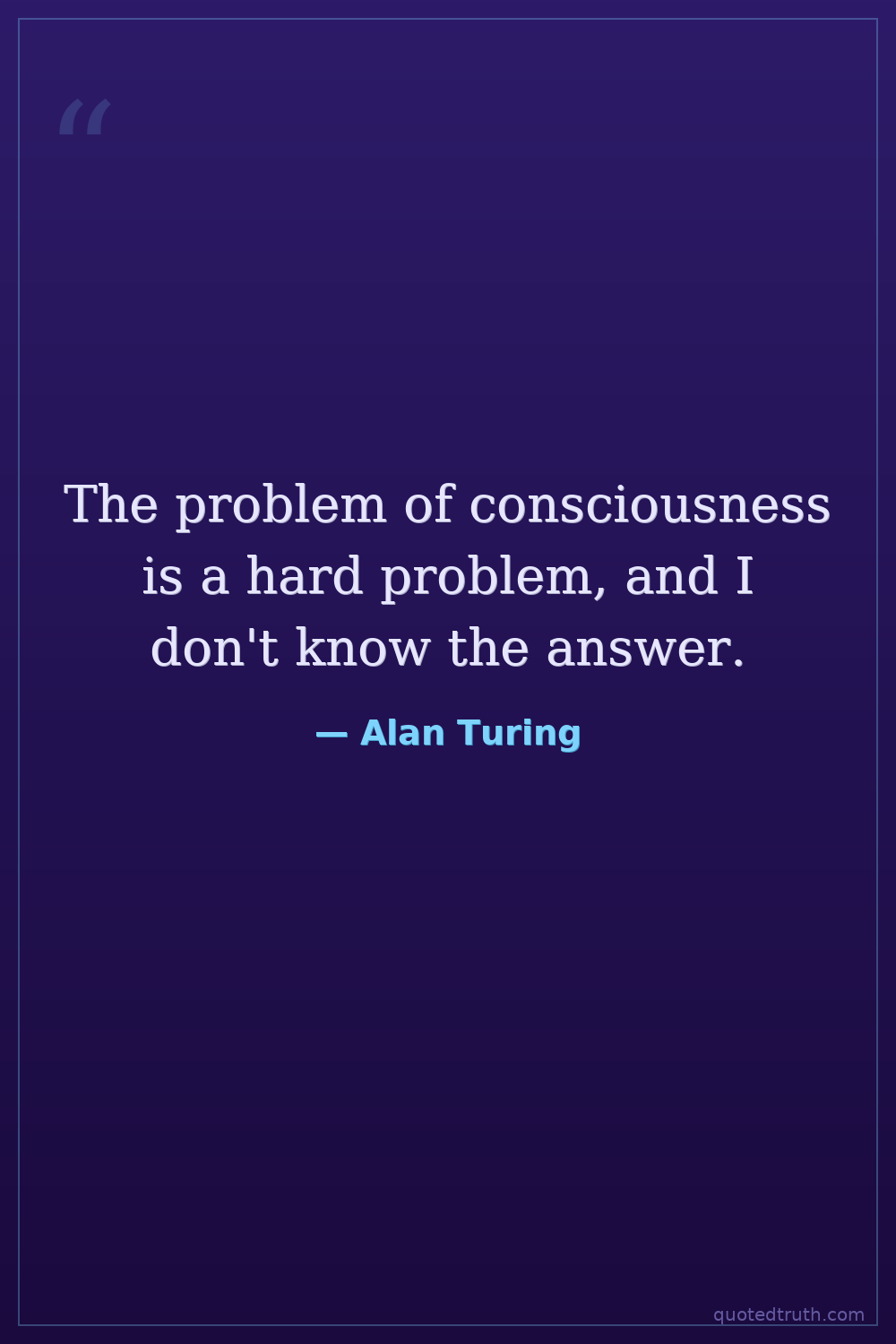 The problem of consciousness is a hard problem, and I don't know the answer.