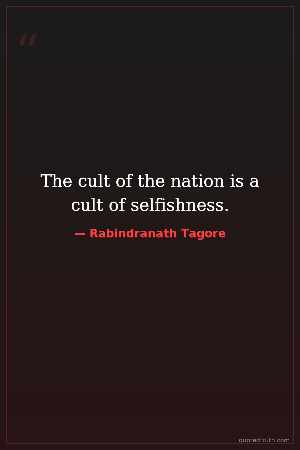 The cult of the nation is a cult of selfishness.