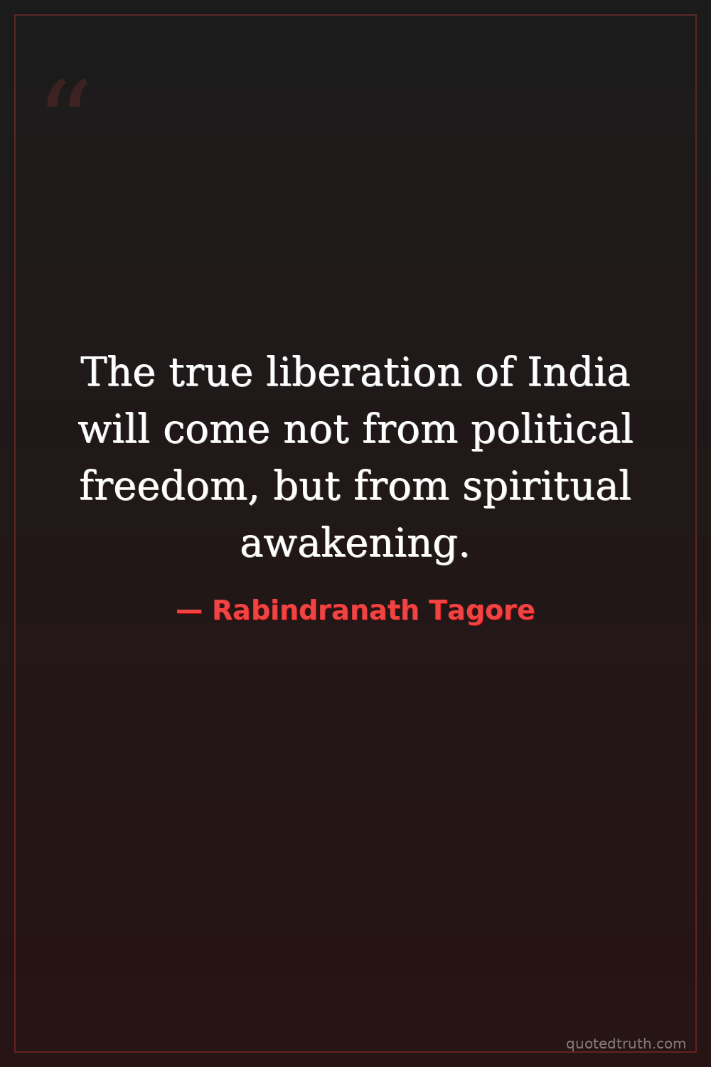 The true liberation of India will come not from political freedom, but from spiritual awakening.