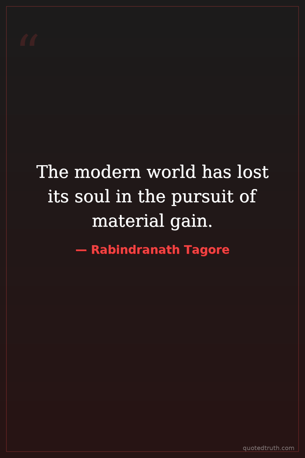 The modern world has lost its soul in the pursuit of material gain.