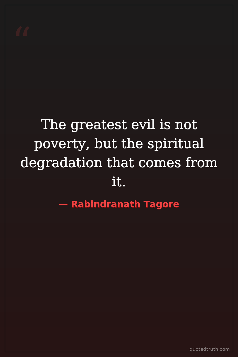 The greatest evil is not poverty, but the spiritual degradation that comes from it.