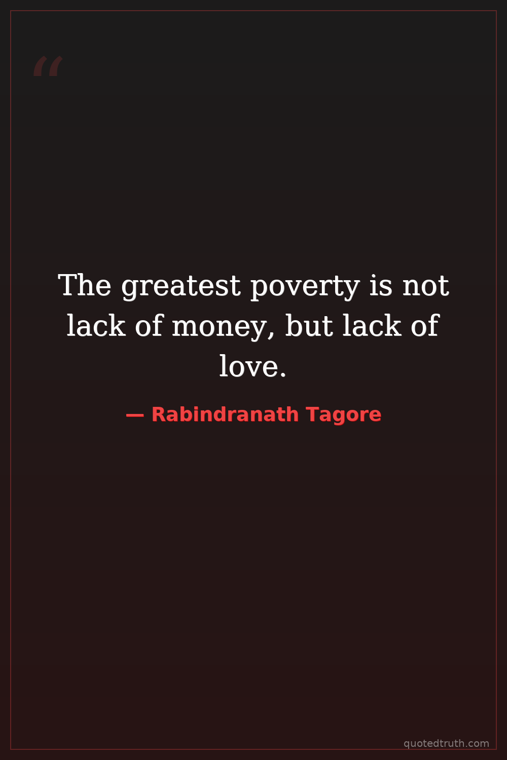 The greatest poverty is not lack of money, but lack of love.