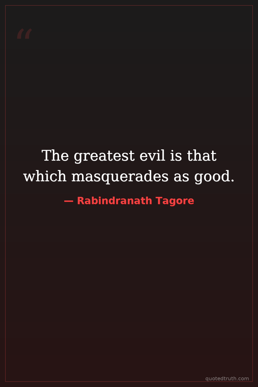 The greatest evil is that which masquerades as good.